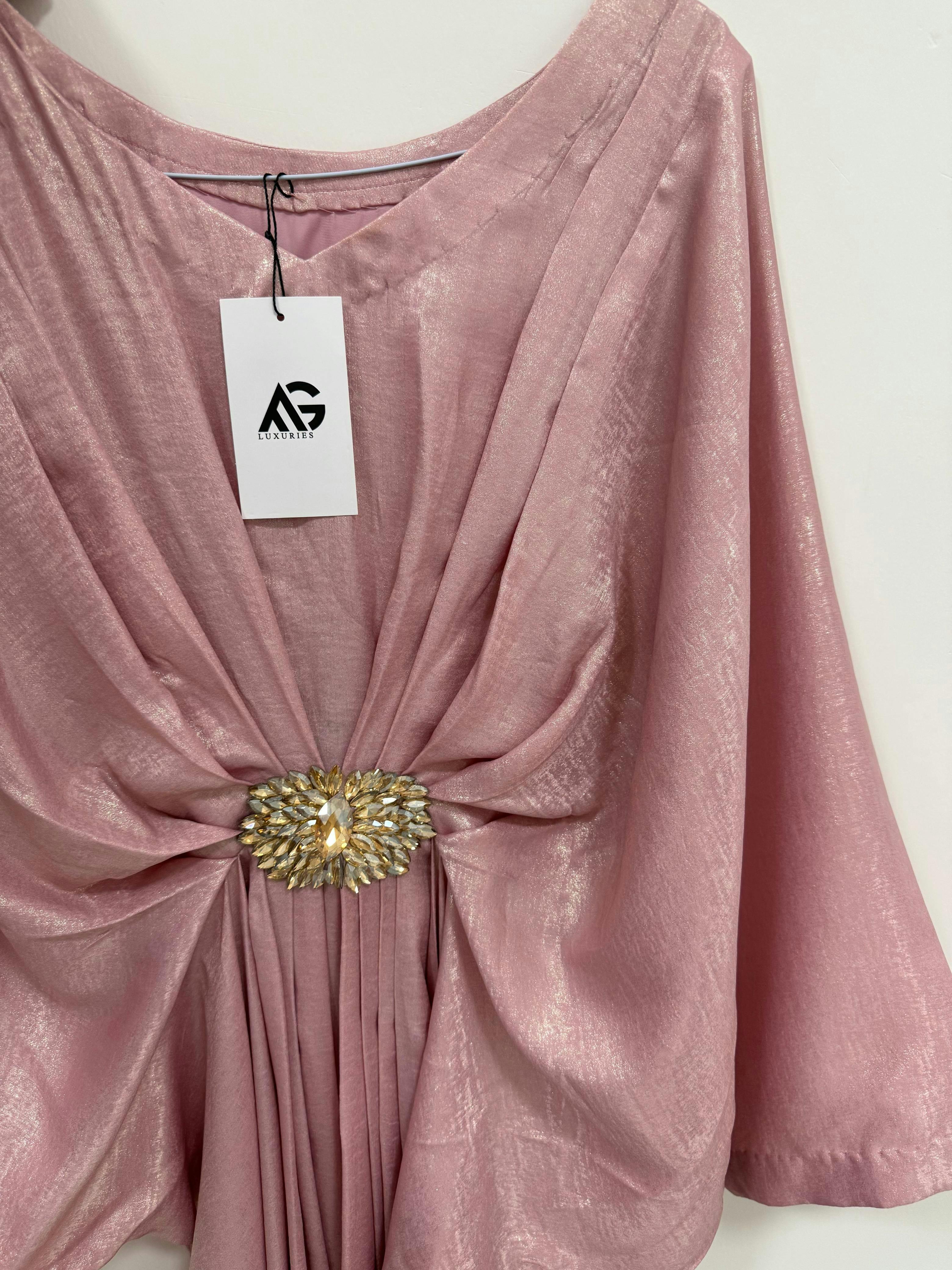 Pink V-Neck Kaftan with Motive is ideal for both day and evening wear. Its elegant design offers a sophisticated look while maintaining a comfortable and graceful fit. Available in one size and made of luxurious Foil Zari. Free delivery in UAE.