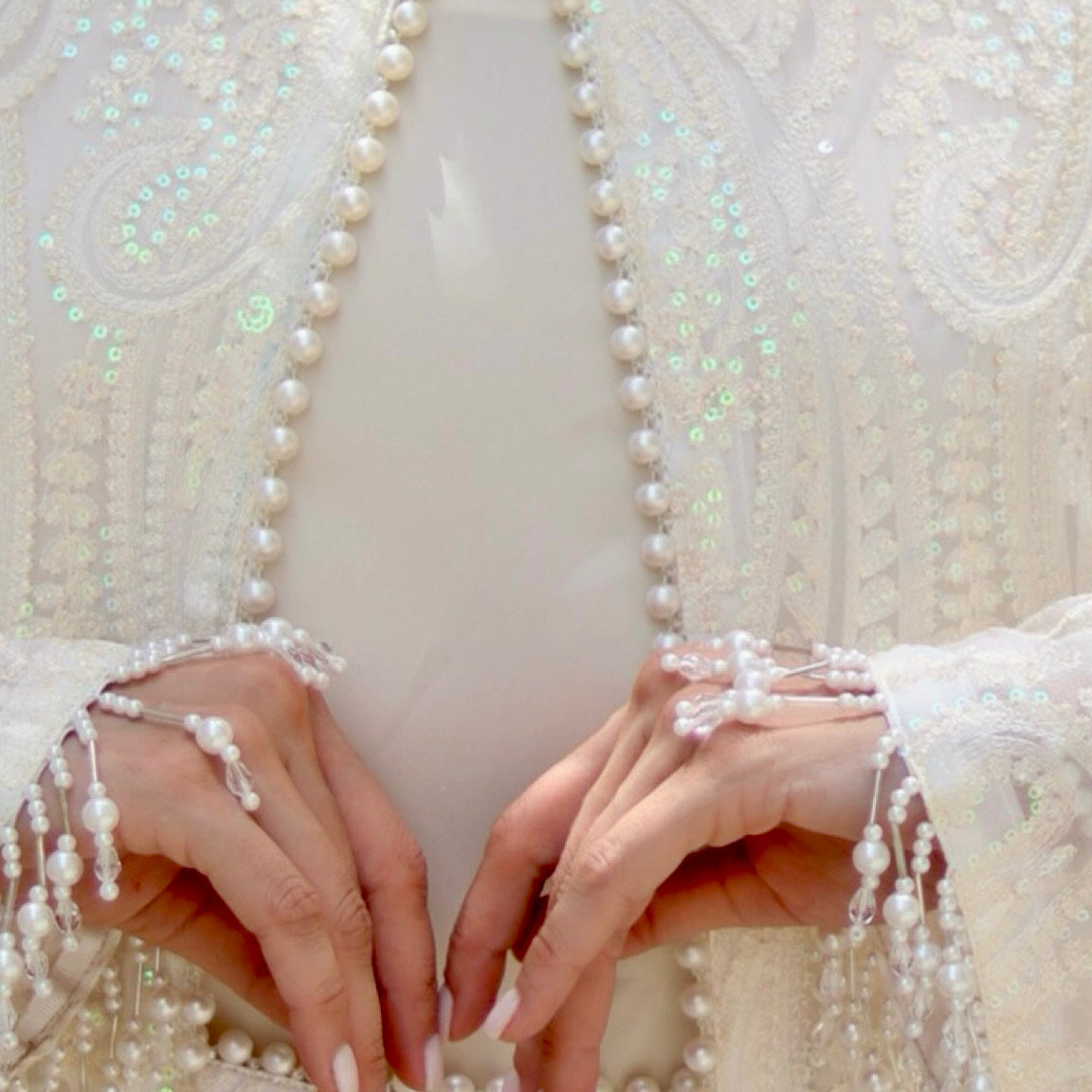 Chikankari embroidery and pearl lace details