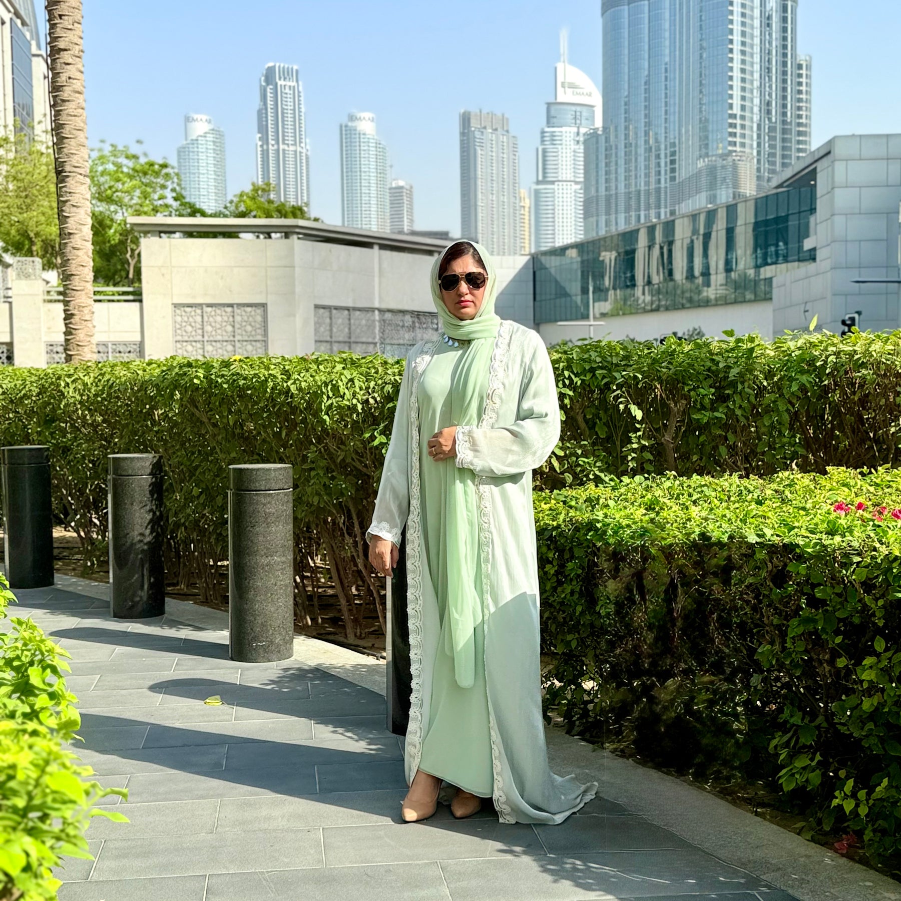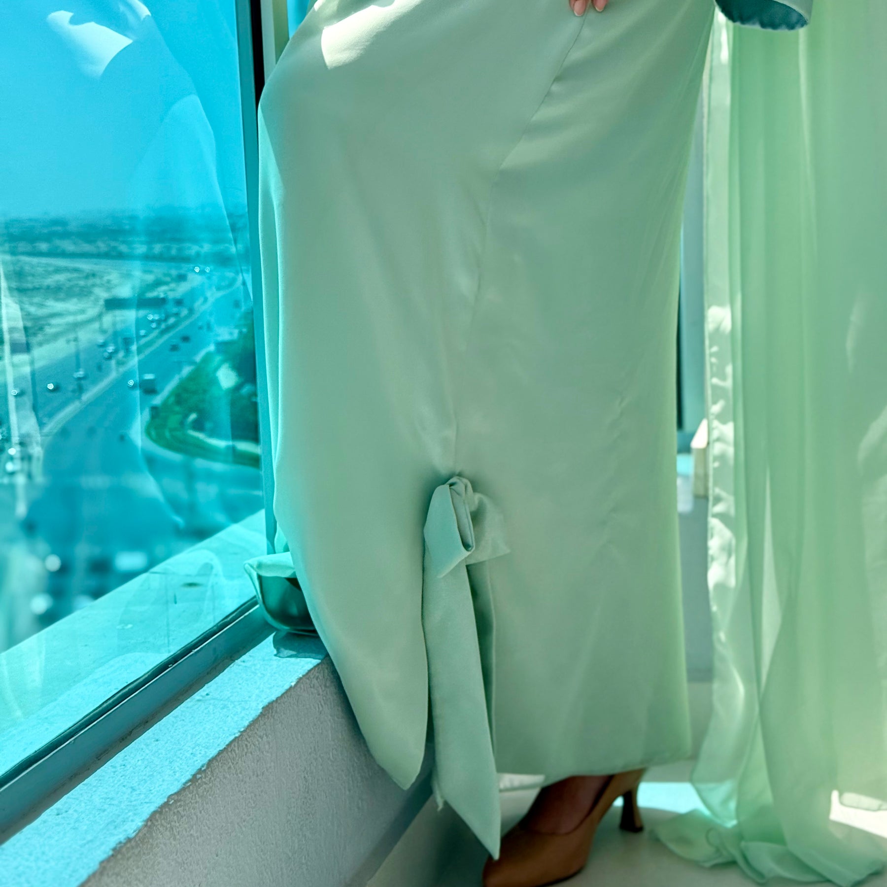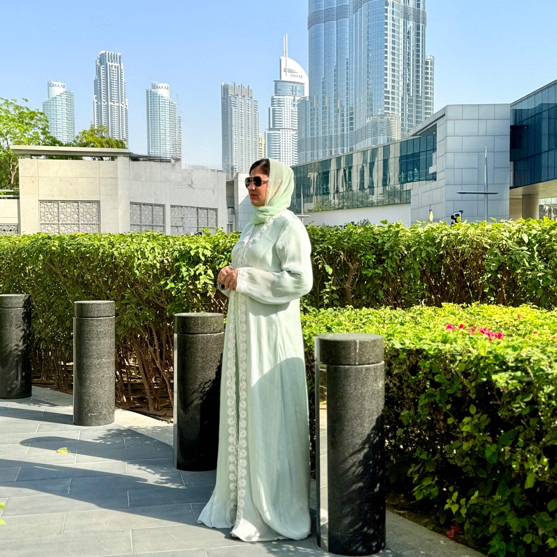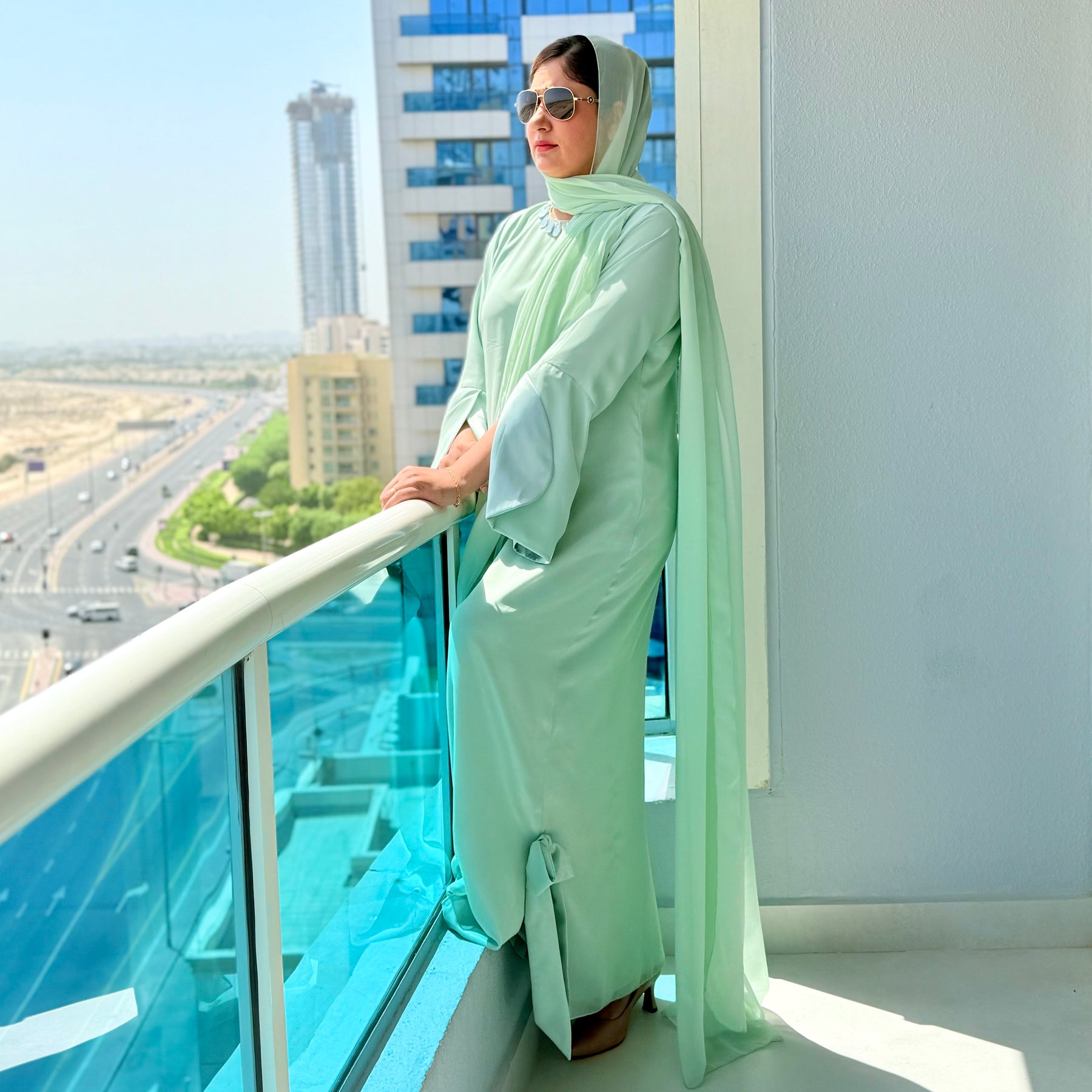 Make a bold yet graceful statement with our Sea Green Maxi Dress with Cape โ€“ a stunning fusion of traditional Arab elegance and modern modest fashion. This 2-in-1 dress offers the versatility of a flowing maxi gown paired with a detachable matching cape, giving you two unique looks for the price of one!