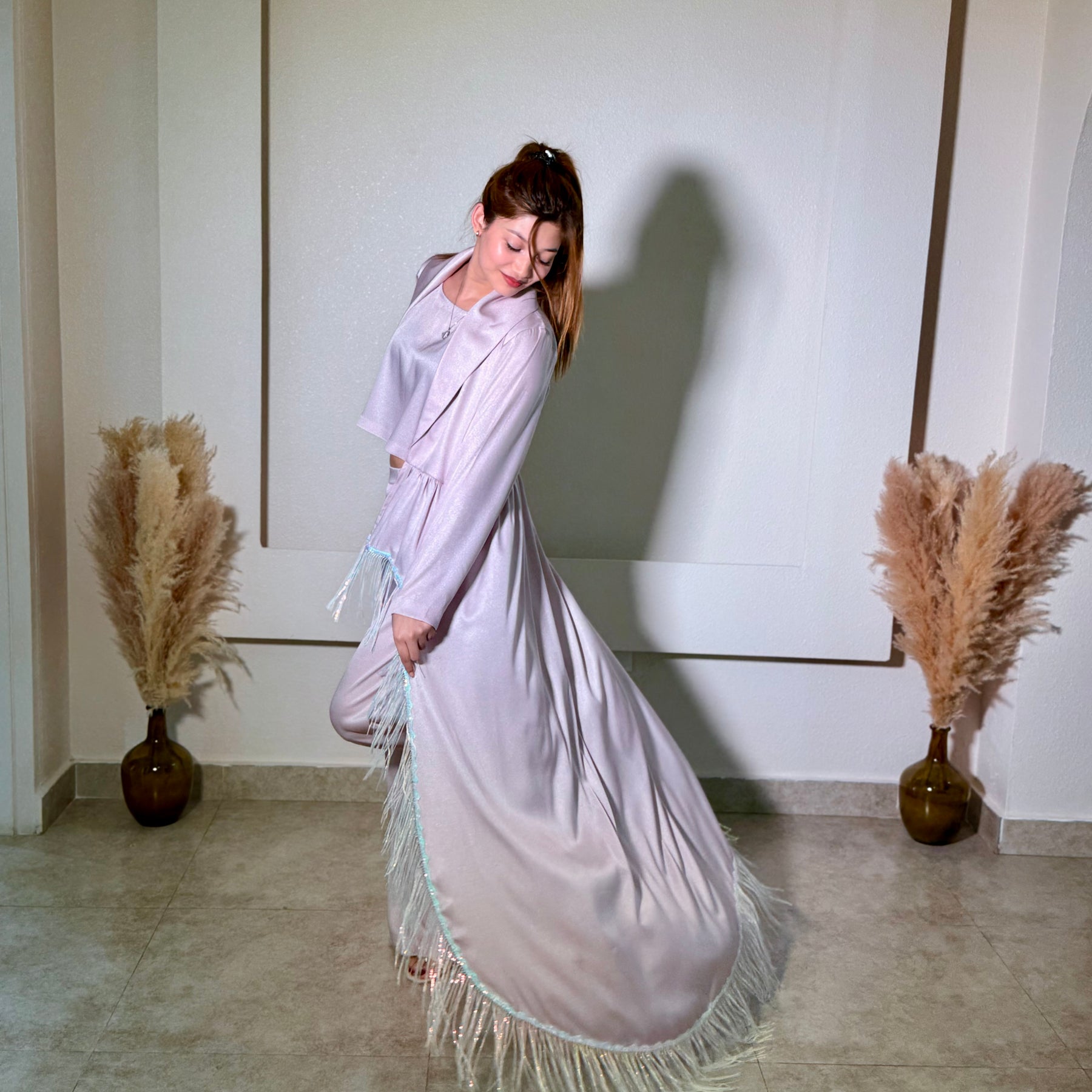 Pair it with nude heels or bold accessories to complete your luxury statement look. Hand wash or use a gentle cycle to maintain the soft texture and elegant drape.