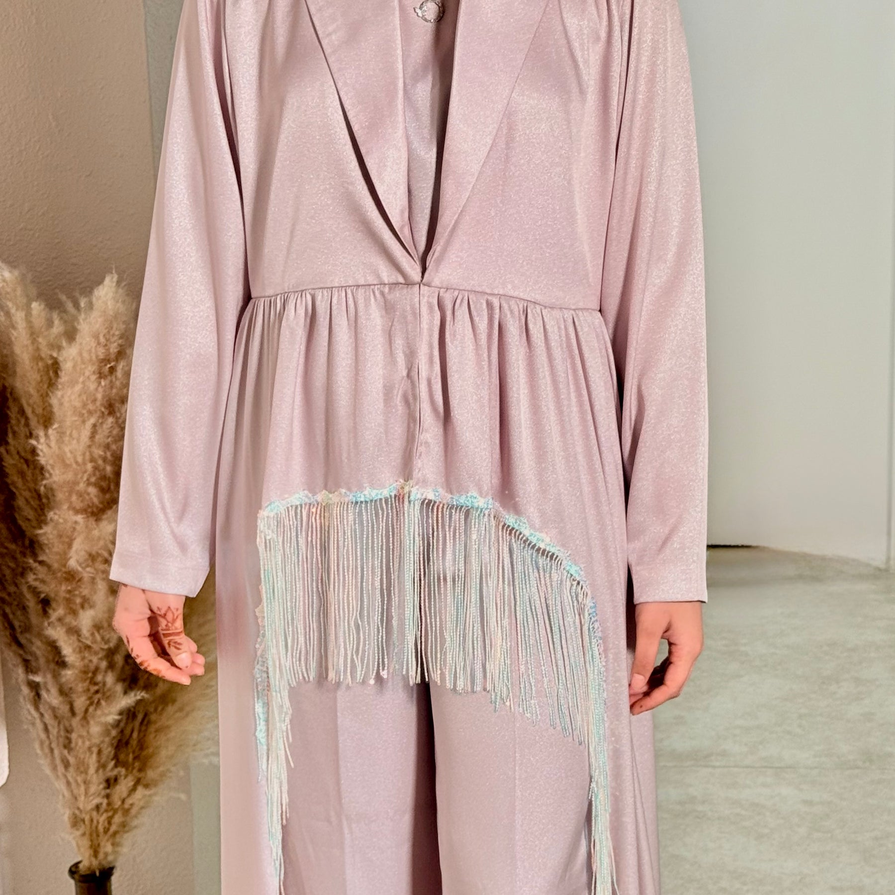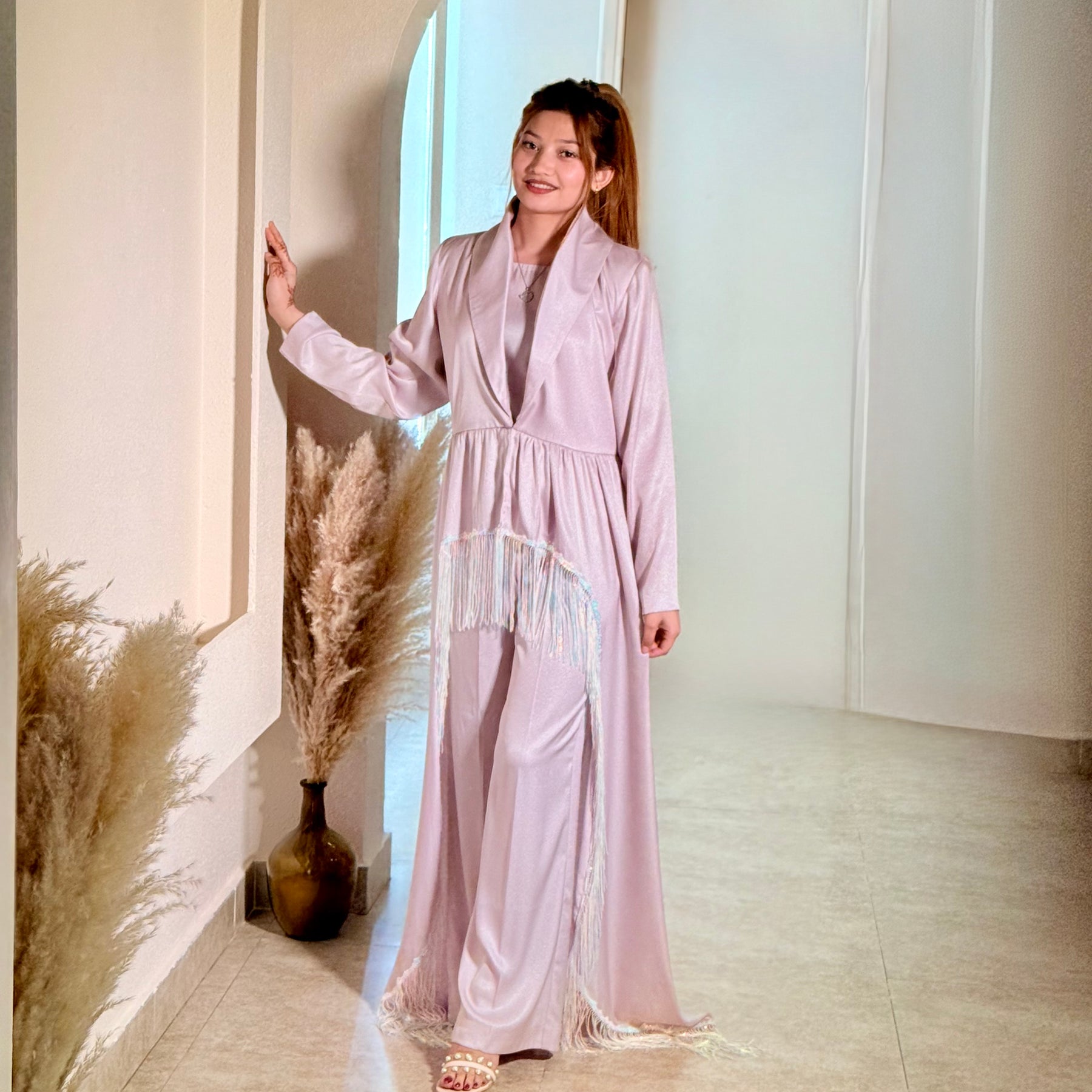 Step into elegance with our High-Waisted Pants and Deep V-Neck Top Set, the perfect blend of confidence and sophistication. Crafted in a chic pink tone, this outfit enhances your silhouette with a flattering high waist and gracefully flowy flared bottoms.